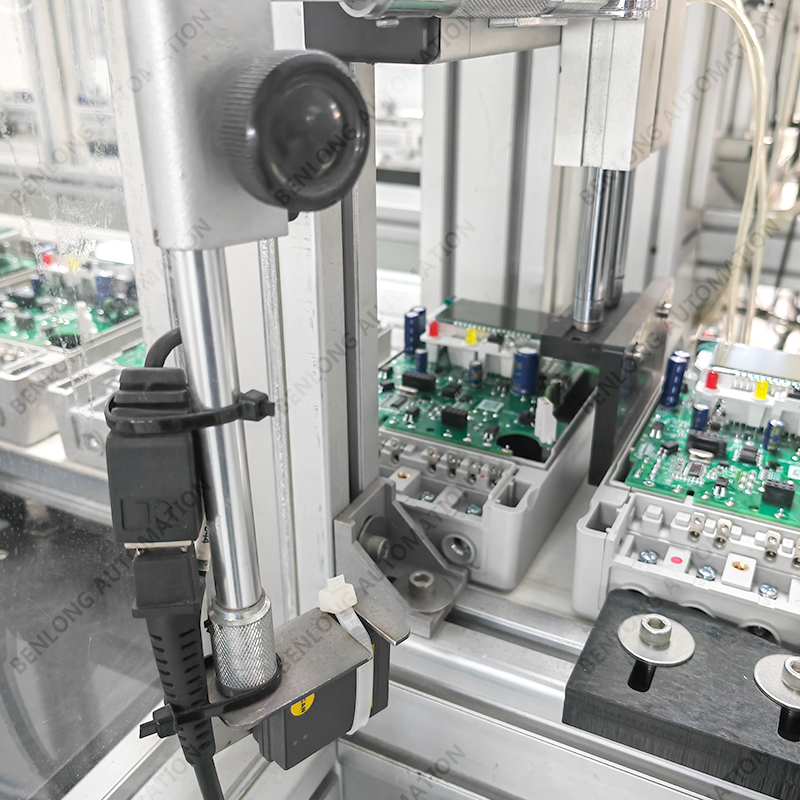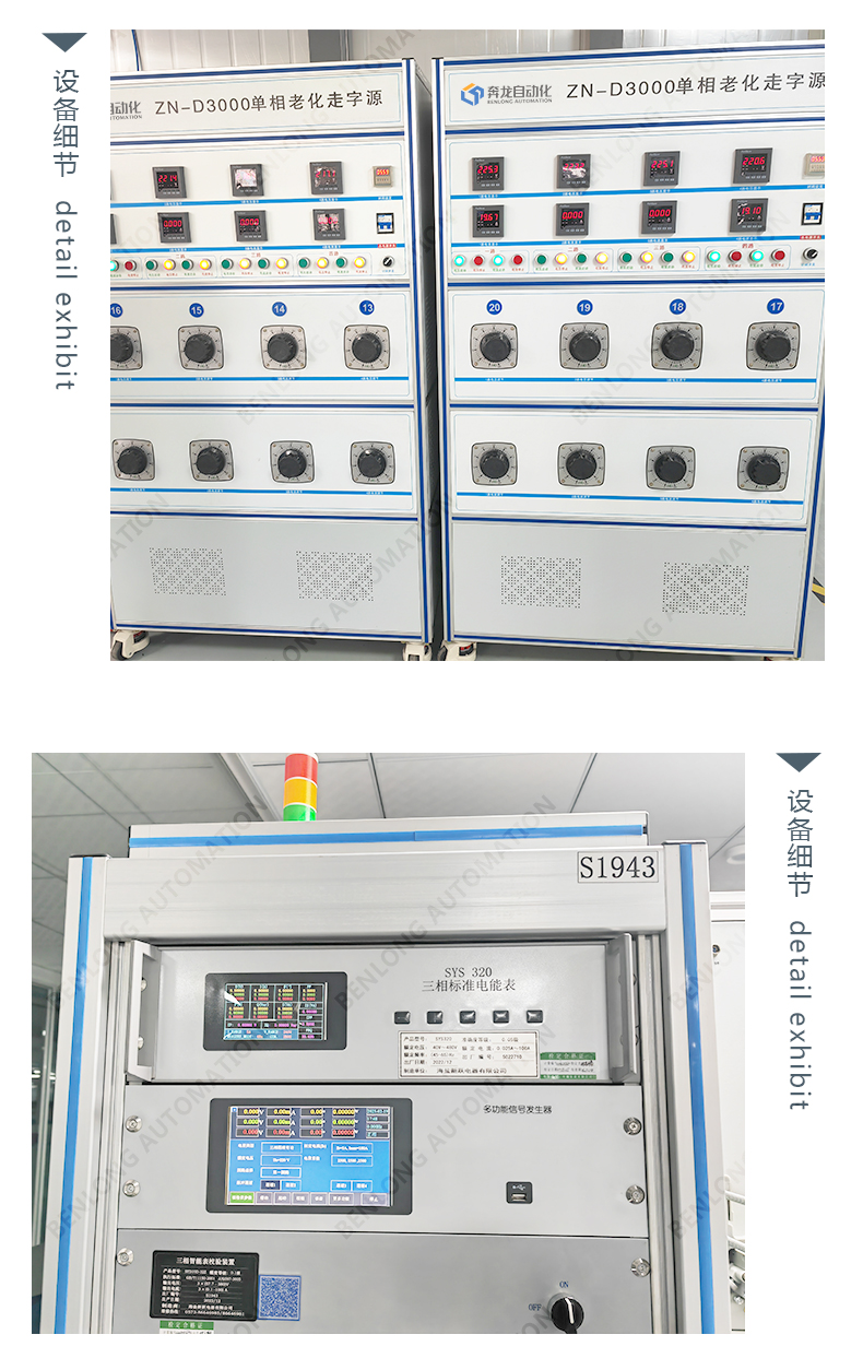 復(fù)校檢測、裝配銘牌、掃碼資產(chǎn)信息數(shù)據(jù)對比、合格不合格區(qū)分、包裝、碼垛、AGV物流、缺料報警等工序的裝配、在線檢測、