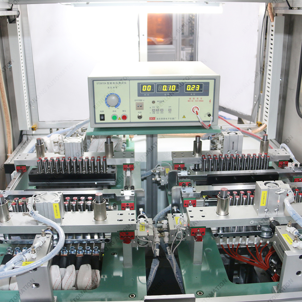 具有自動(dòng)掃碼/讀碼、低倍檢測(cè)、高倍檢測(cè)、CCD觀察窗顏色檢測(cè)、內(nèi)跳外不跳、通斷檢測(cè)、耐壓檢測(cè)、不良品區(qū)分、缺料報(bào)警、