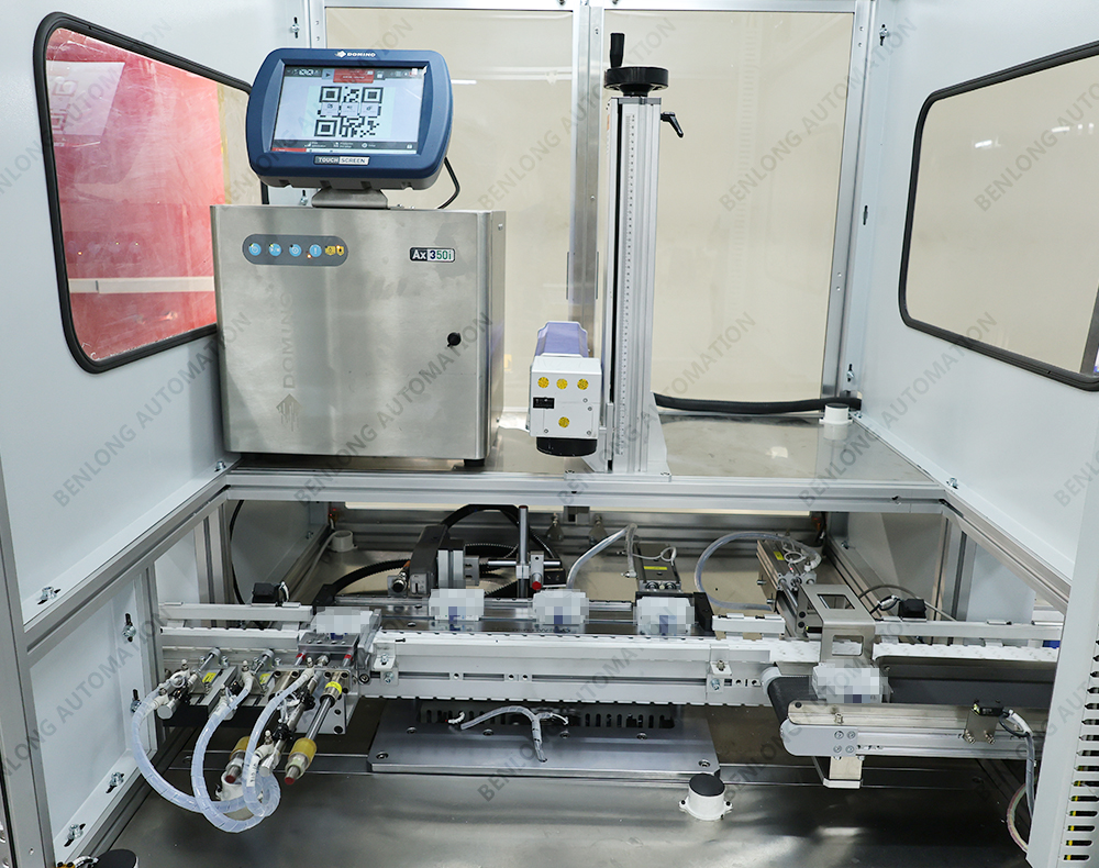 具有自動(dòng)上料、自動(dòng)激光打標(biāo)、自動(dòng)讀碼檢測(cè)、自動(dòng)下料、缺料報(bào)警、90°旋轉(zhuǎn)等工序的在線監(jiān)測(cè)、實(shí)時(shí)監(jiān)控、質(zhì)量溯源、條碼識(shí)別、關(guān)鍵元器件壽命監(jiān)測(cè)、數(shù)據(jù)存儲(chǔ)、MES系統(tǒng)