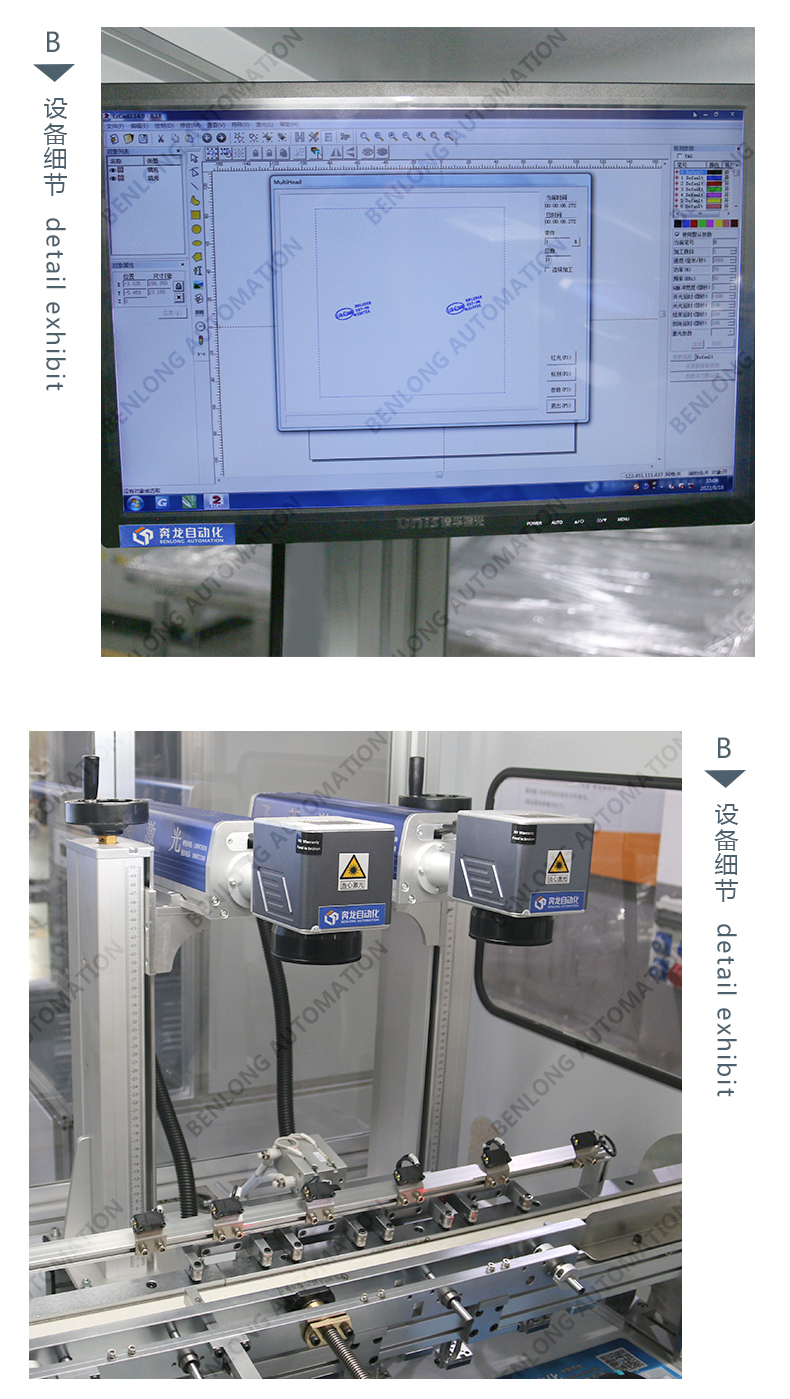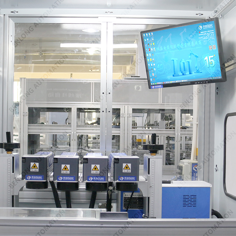 具有自動(dòng)上料、精密加工、激光打標(biāo)、自動(dòng)下料、除塵、不良品區(qū)分、缺料報(bào)警等工序的在線監(jiān)測(cè)、實(shí)時(shí)監(jiān)控、