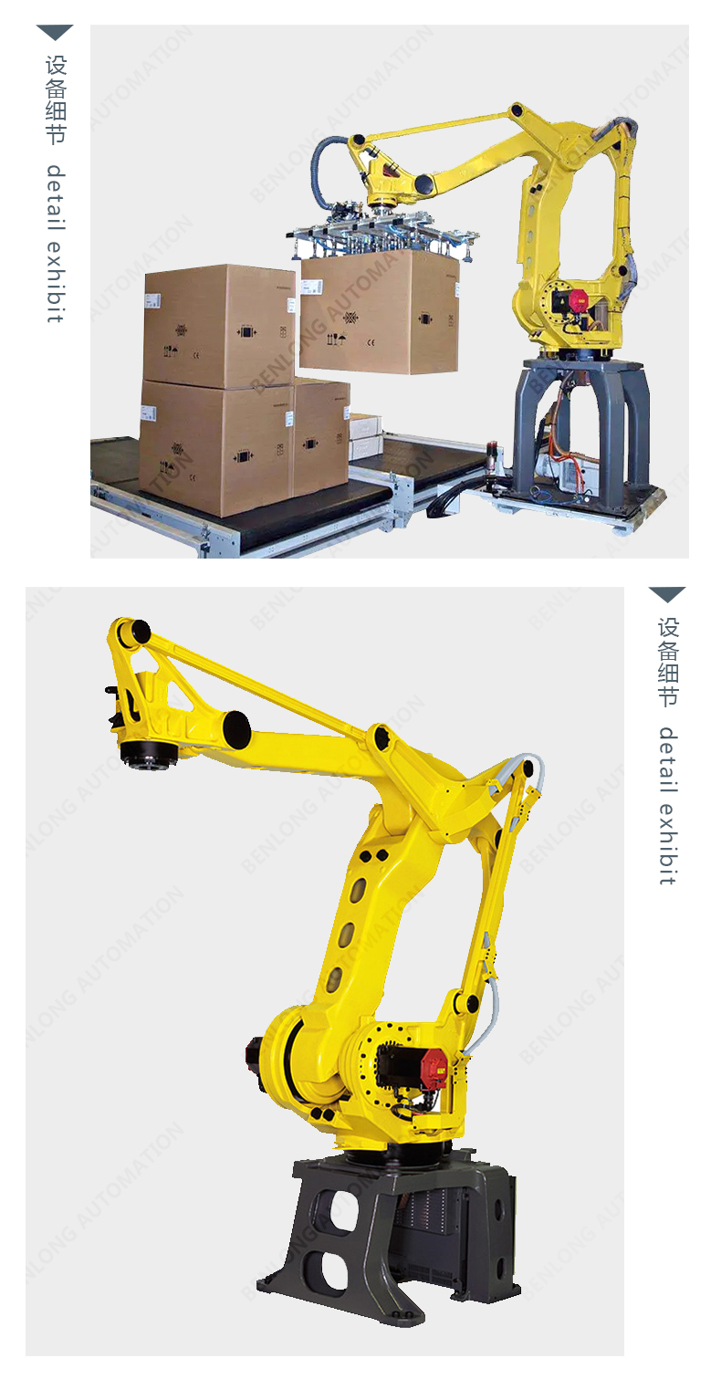 外箱自動(dòng)成型、中盒產(chǎn)品裝入外箱內(nèi)、外箱自動(dòng)貼標(biāo)簽、檢測(cè)、噴碼、封透明膠帶、捆扎帶、90°旋轉(zhuǎn)、下料碼垛、缺料報(bào)警等工序