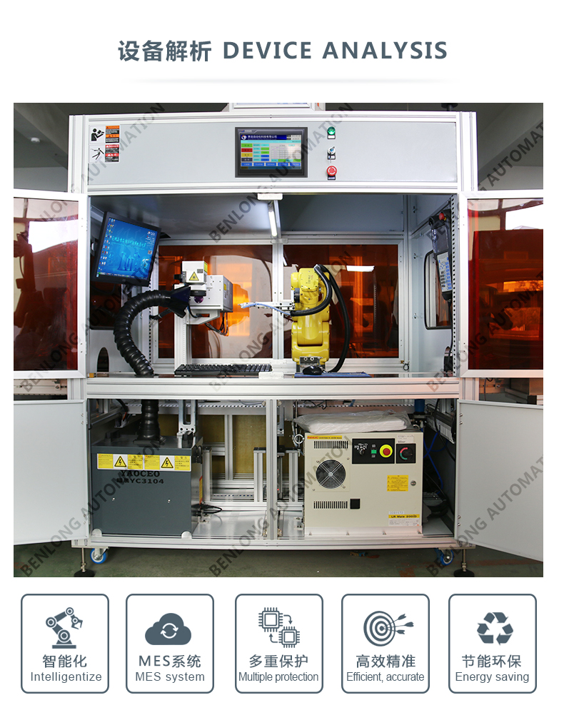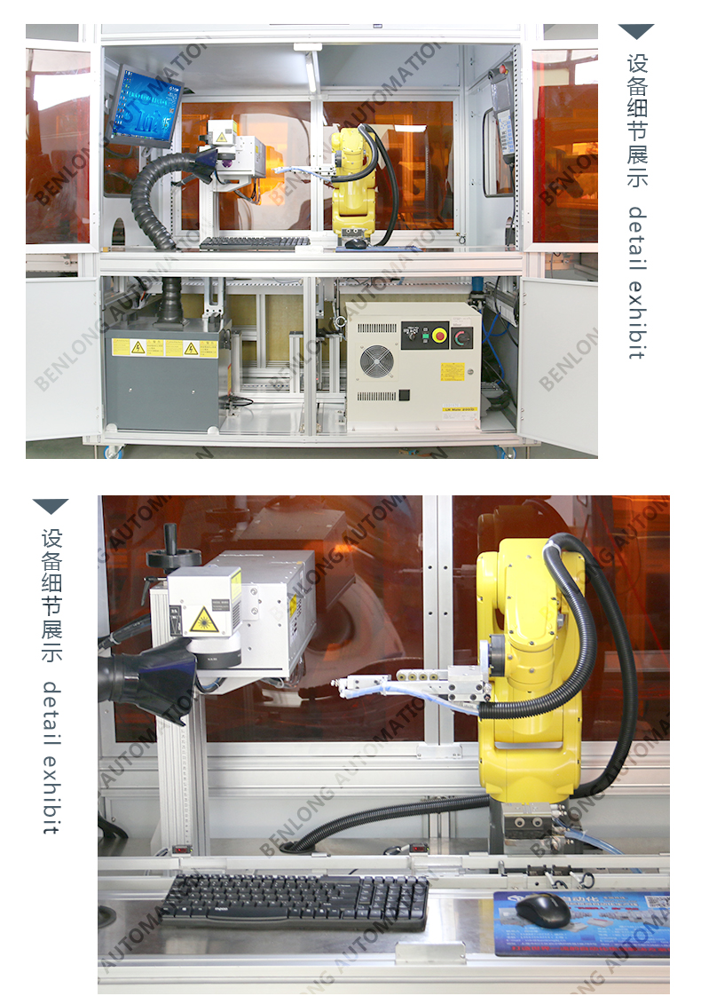 具有自動(dòng)激光打標(biāo)產(chǎn)品商標(biāo)、產(chǎn)品參數(shù)、CCD視覺(jué)檢測(cè)、不良品區(qū)分、缺料報(bào)警、自動(dòng)旋轉(zhuǎn)等工序的在線監(jiān)測(cè)、