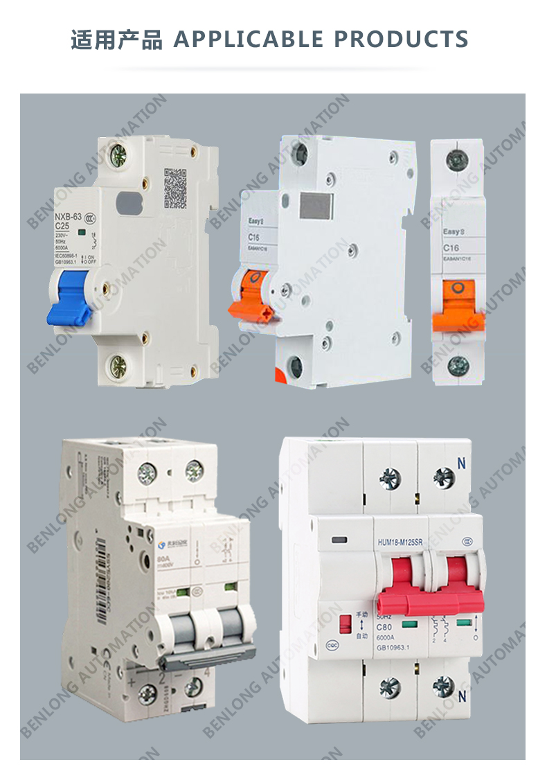 5、兼容產(chǎn)品類(lèi)型:1P/1A、1P/6A、1P/10A、1P/16A、1P/20A、1P/25A、1P/32A、1P/40A、1P/50A、1P/63A、1P/80A、2P/1A、2P/6A、2P/10A、