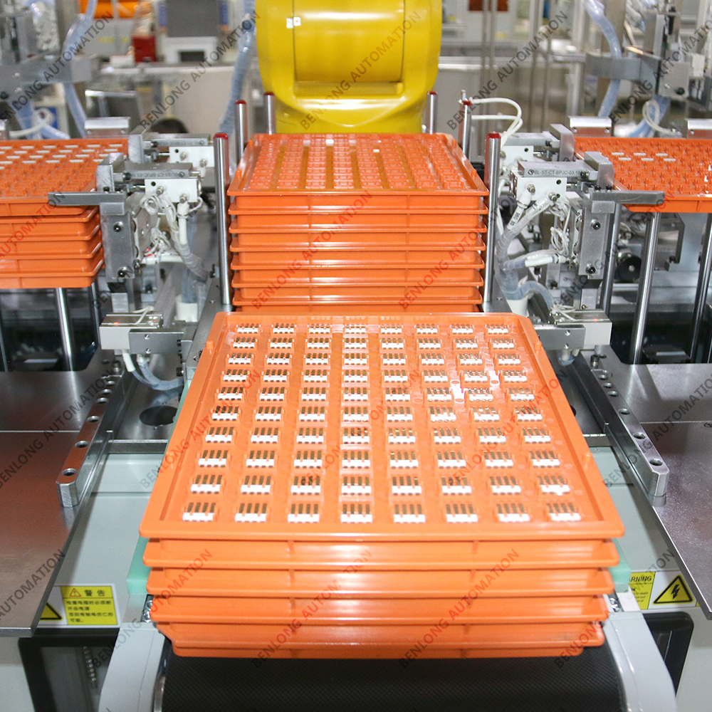 具有自動(dòng)上料、觸頭裝配、CCD視覺檢測(cè)、自動(dòng)擺盤、碼垛、AGV物流、缺料/滿料報(bào)警等工序的裝配、在線檢測(cè)、
