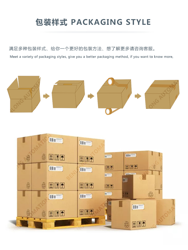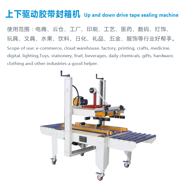 人工放料或其他包裝設(shè)備出料口自動(dòng)放料,自動(dòng)封箱。