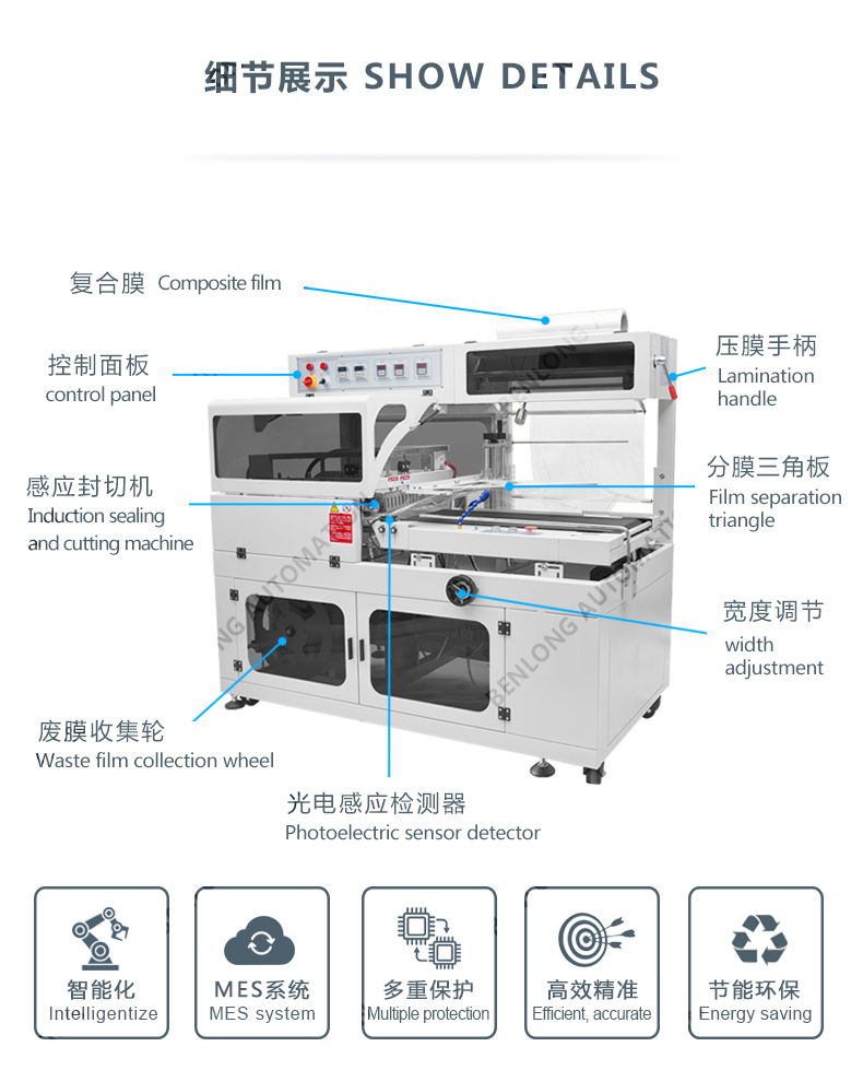 作業(yè)方式:人工放料或配合機(jī)械手自動(dòng)放料,自動(dòng)感應(yīng),自動(dòng)封切。