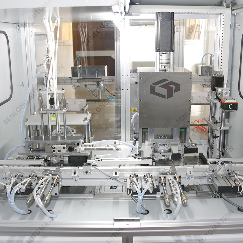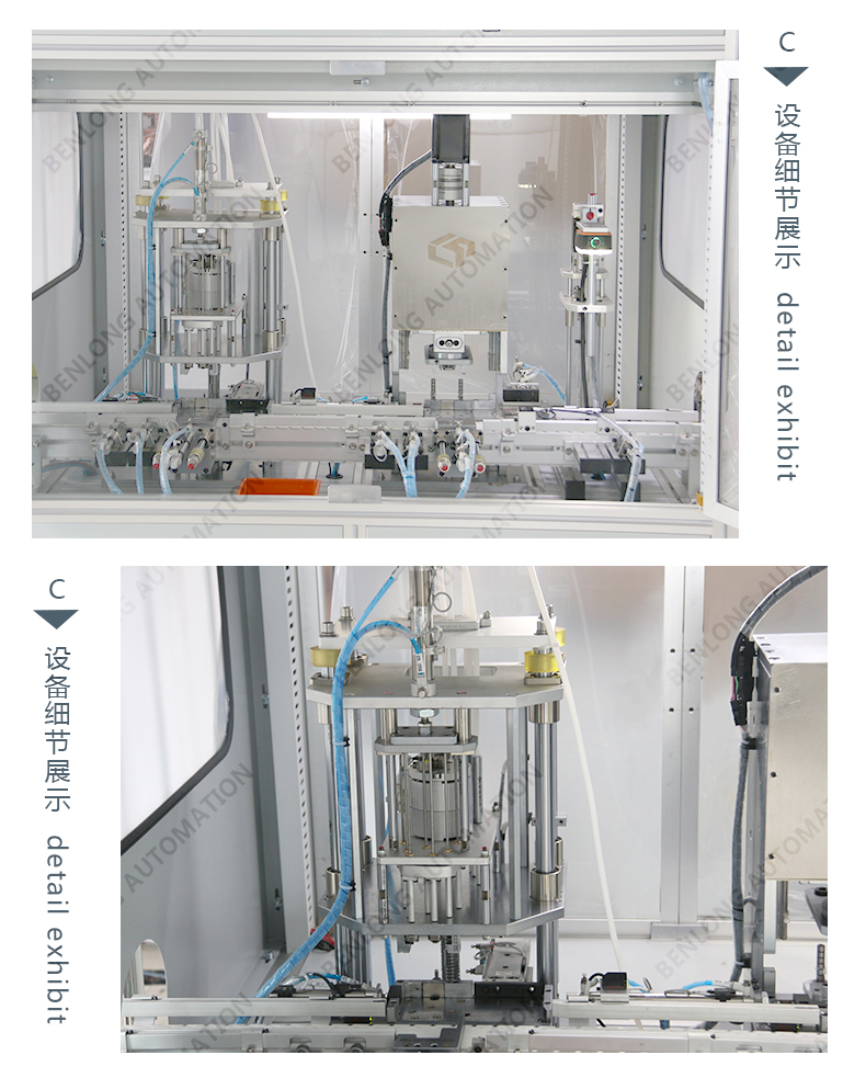具有自動穿鉚釘鉚接、CCD檢測、不良品區(qū)分、缺料報警、翻轉豎立等工序的在線監(jiān)測、實時監(jiān)控、質量溯源、條碼識別、