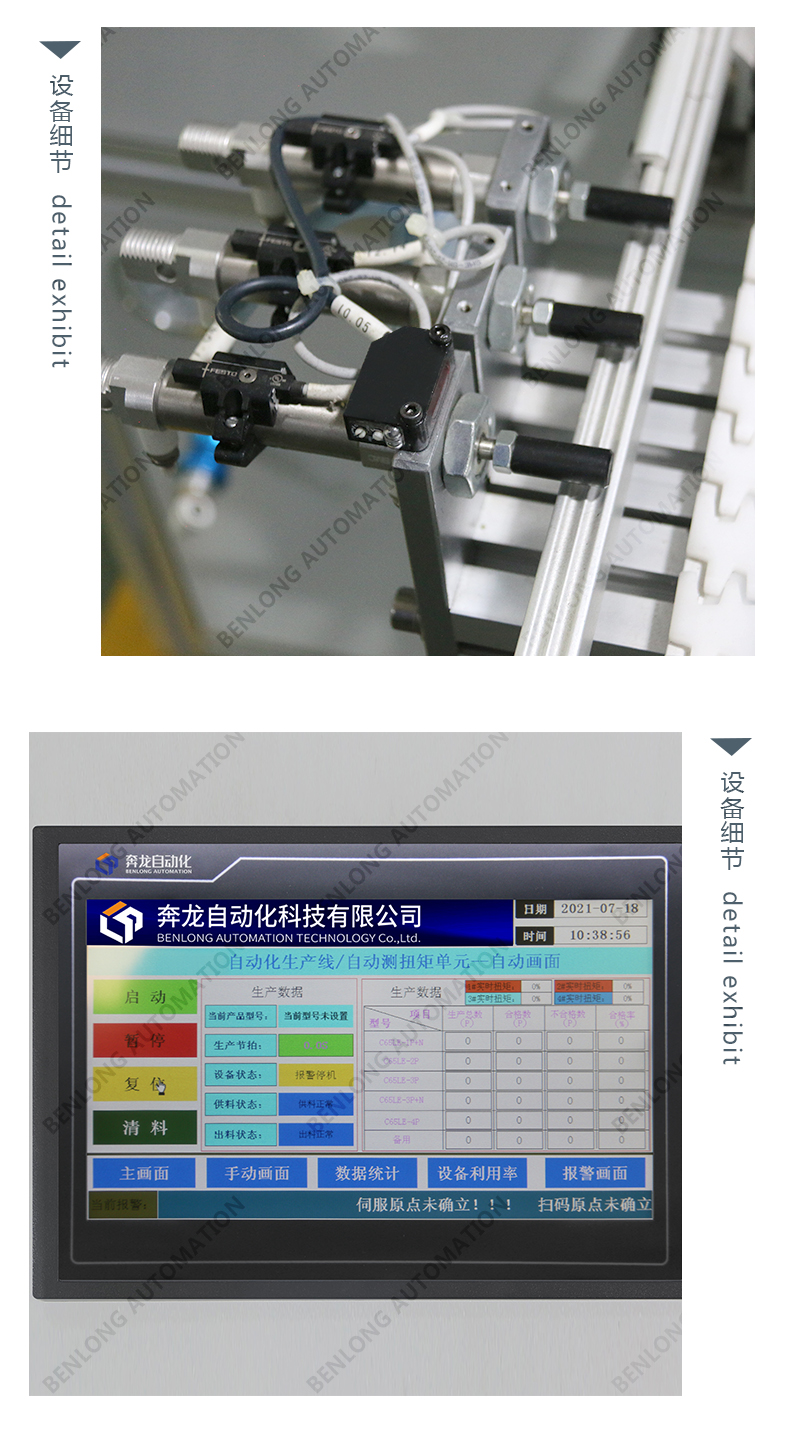 具有自動(dòng)上料、扭矩檢測(cè)、下料、缺料報(bào)警、90°旋轉(zhuǎn)等工序的在線監(jiān)測(cè)、實(shí)時(shí)監(jiān)控、質(zhì)量溯源、條碼識(shí)別、關(guān)鍵元器件壽命監(jiān)測(cè)、數(shù)據(jù)存儲(chǔ)、