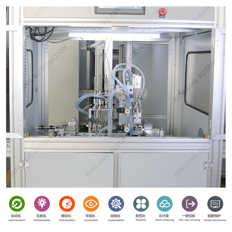 具有自動(dòng)多極拼裝、CCD視覺(jué)檢測(cè)、不良品區(qū)分、缺料報(bào)警、翻轉(zhuǎn)豎立等工序的在線監(jiān)測(cè)、實(shí)時(shí)監(jiān)控、質(zhì)量溯源、條碼識(shí)別、關(guān)鍵元器件壽命監(jiān)測(cè)、