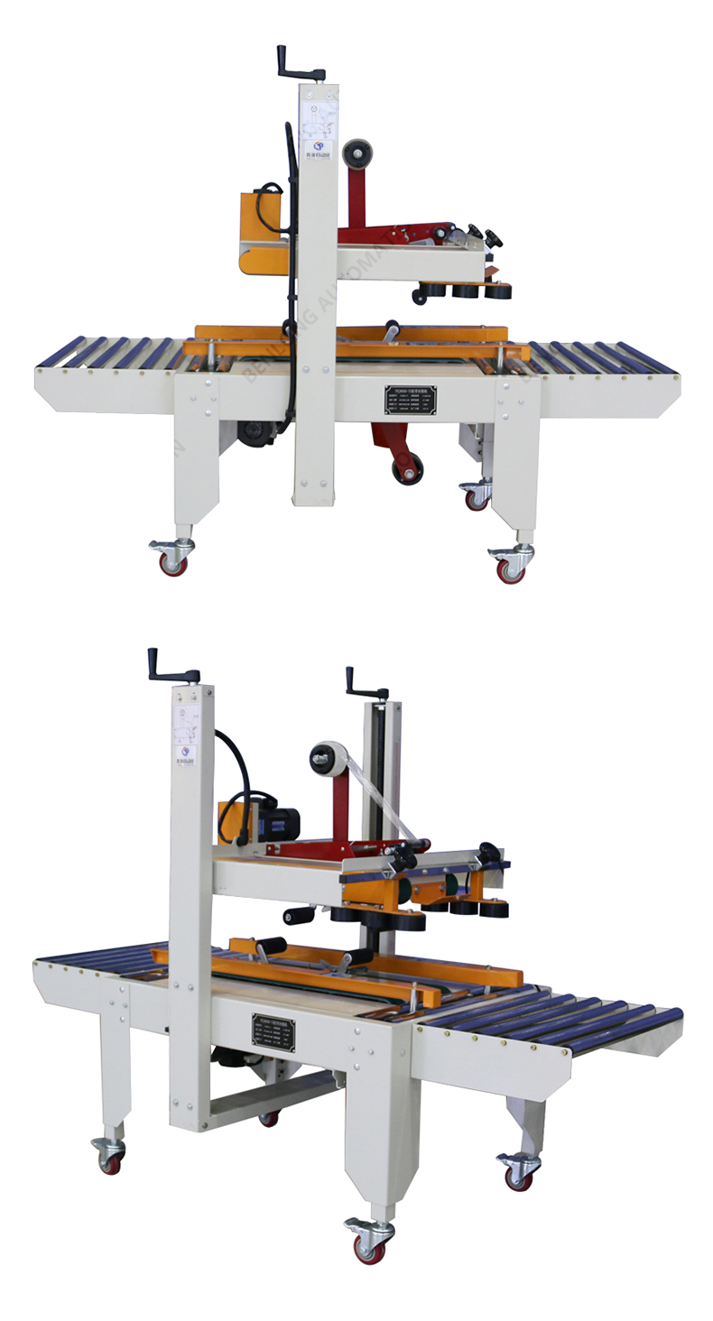 人工放料或其他包裝設(shè)備出料口自動(dòng)放料,自動(dòng)封箱。