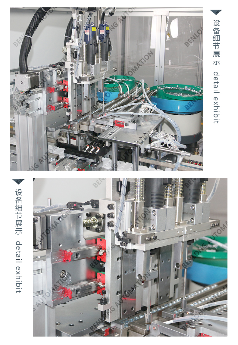 具有自動(dòng)裝配接線柱螺絲、自動(dòng)檢測(cè)扭矩、不良品區(qū)分、下料、缺料/滿料報(bào)警等工序的在線監(jiān)測(cè)、實(shí)時(shí)監(jiān)控、質(zhì)量溯源、條碼識(shí)別、
