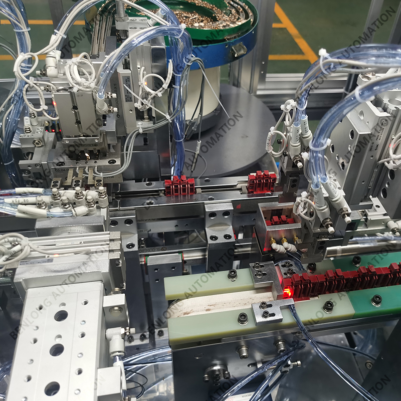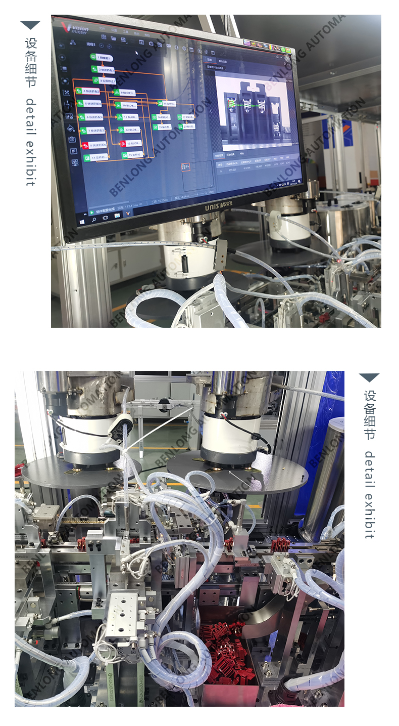 具有自動(dòng)上料、插芯裝配、底座裝配、主輔靜觸頭裝配、人工裝配寶塔彈簧、鎖上下蓋螺絲、鎖瓦片螺絲、通斷、耐壓、功耗、