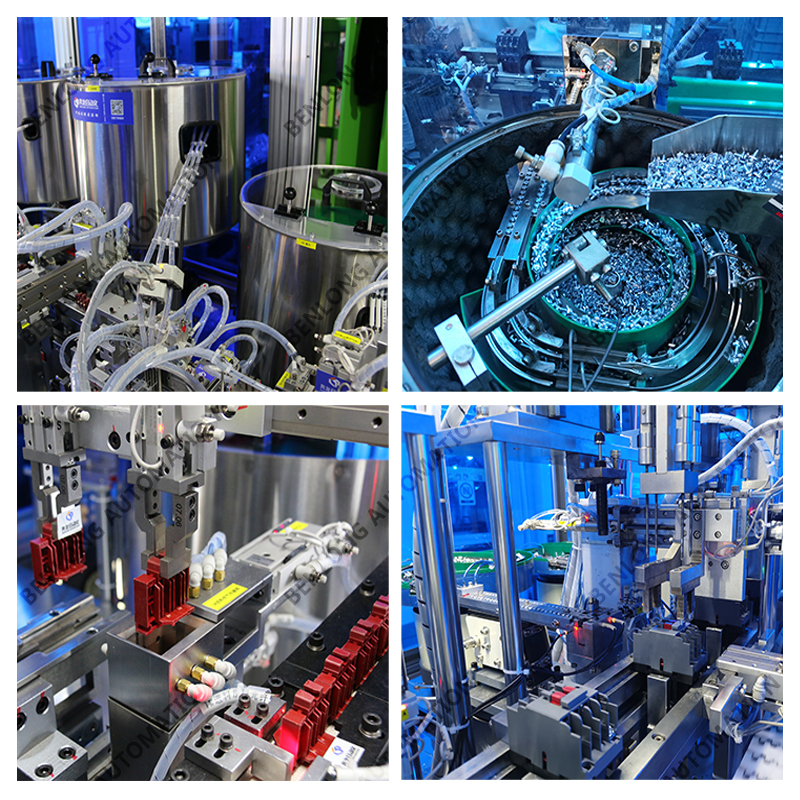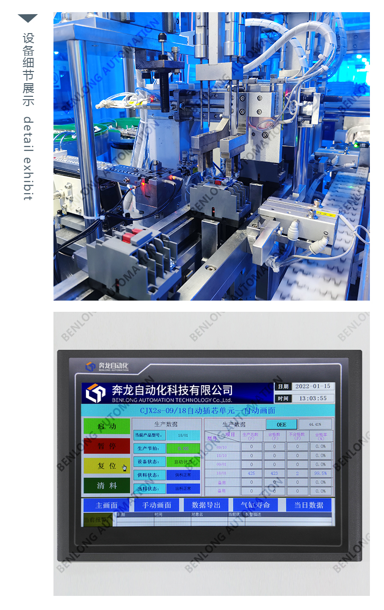 具有自動(dòng)上料、插芯裝配、底座裝配、主輔靜觸頭裝配、人工裝配寶塔彈簧、鎖上下蓋螺絲、鎖瓦片螺絲、通斷、耐壓、功耗、