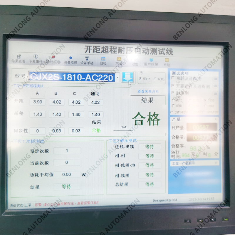 前傾吸合、后傾釋放、開距、超程、總程、同步性、人工裝配前后擋件、移印、激光打標(biāo)、CCD視覺檢測(cè)、貼標(biāo)、噴碼、裝袋、