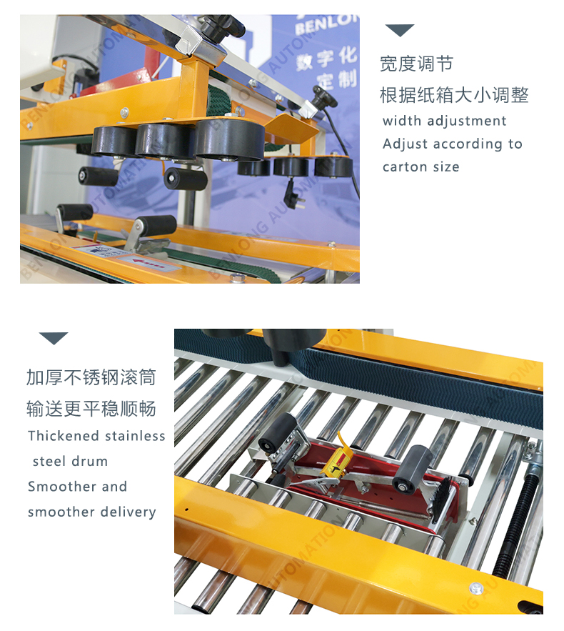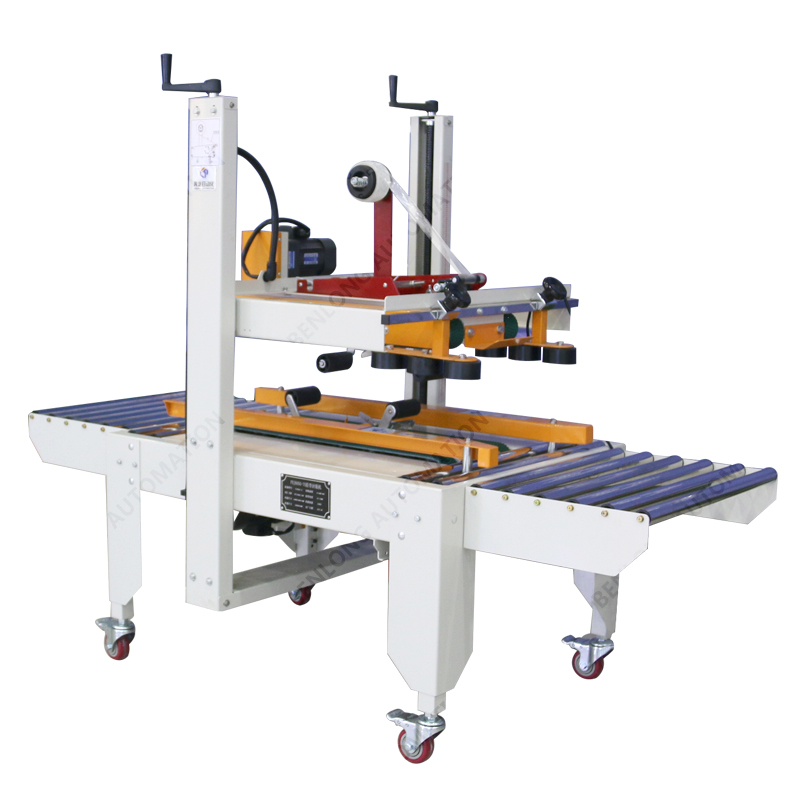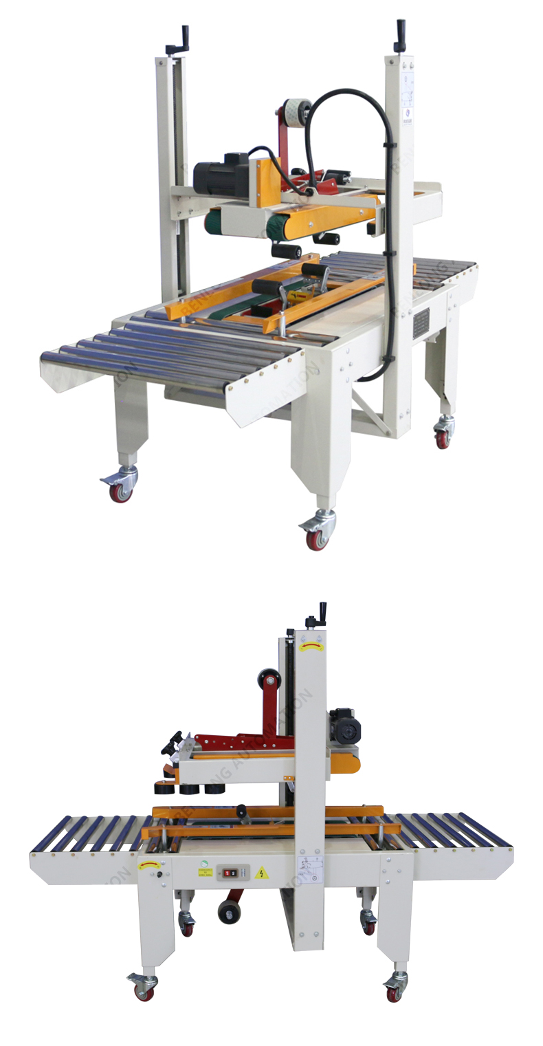 人工放料或其他包裝設(shè)備出料口自動(dòng)放料,自動(dòng)封箱。