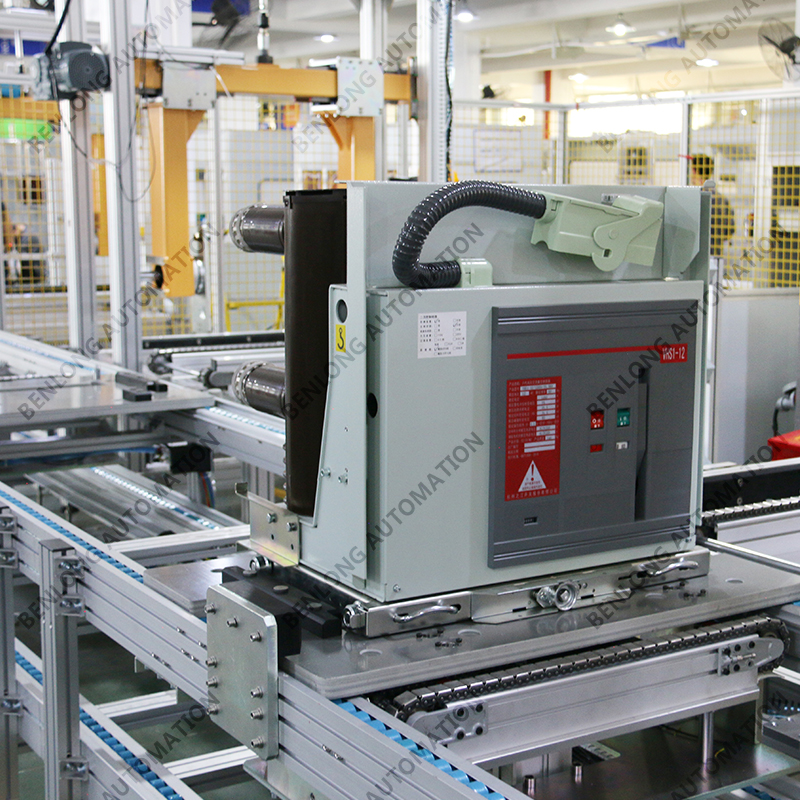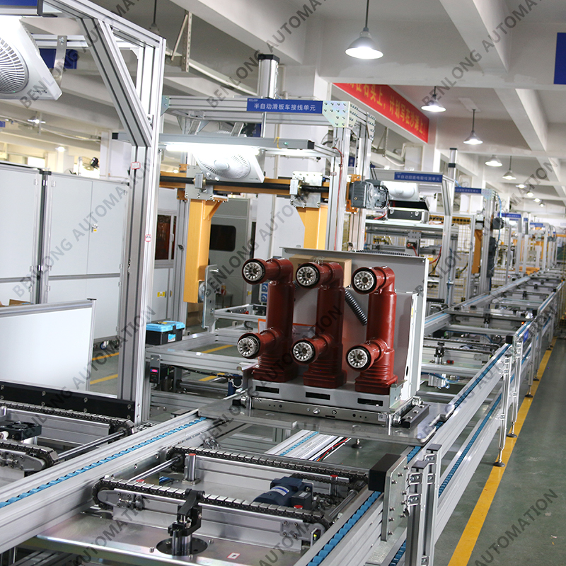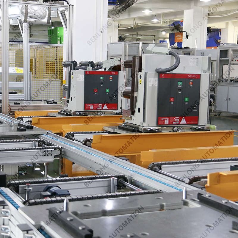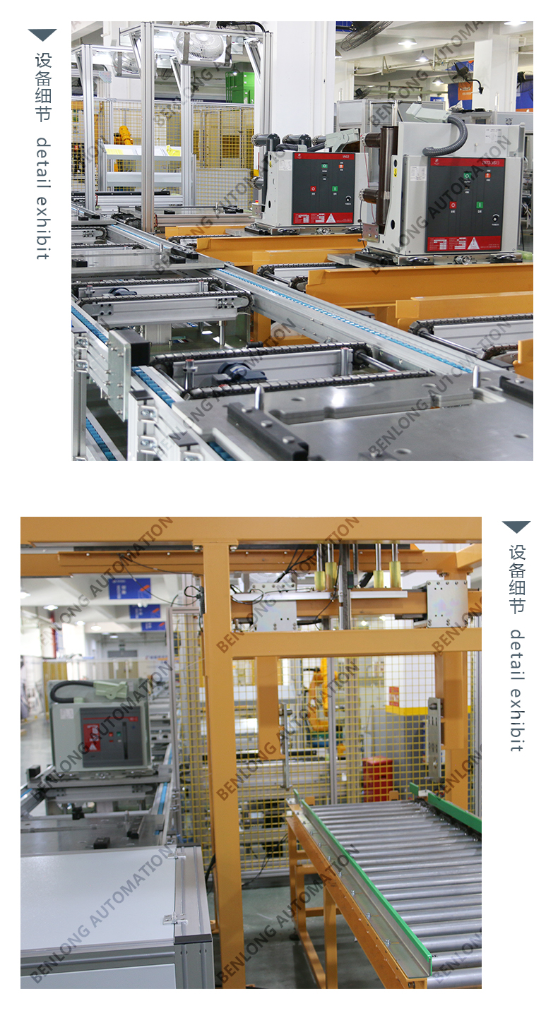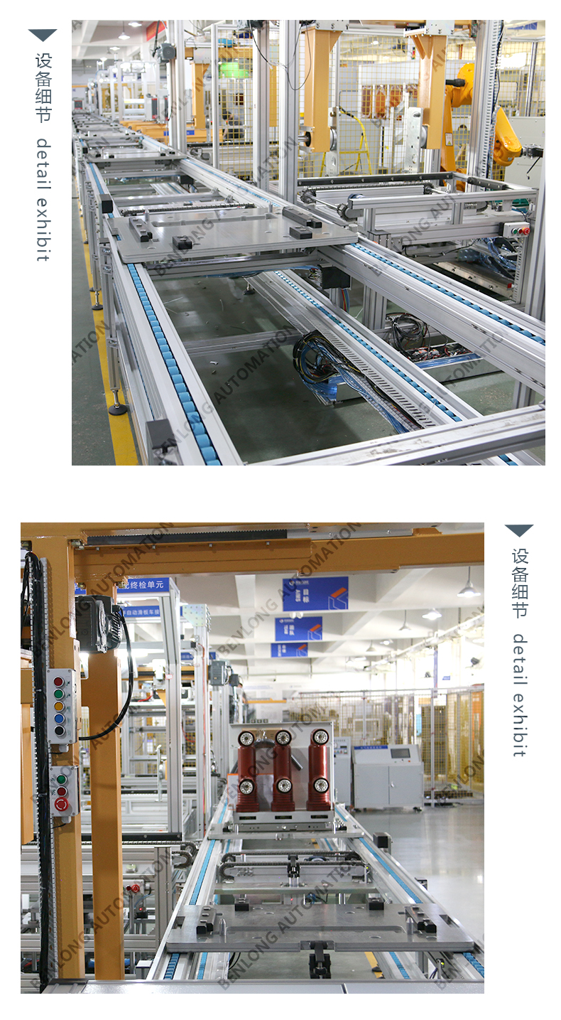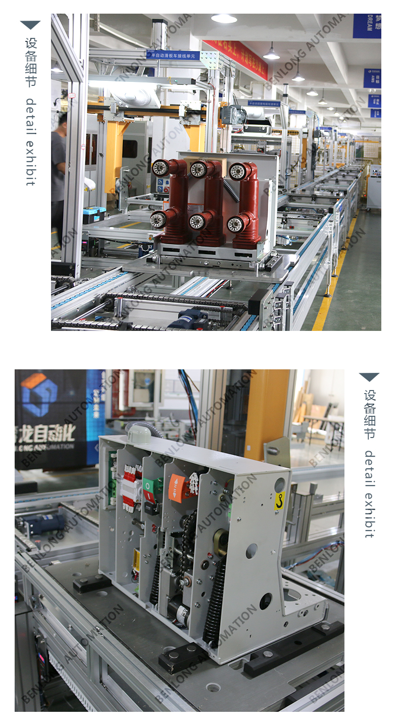 具有自動(dòng)AGV物流輸送、龍門架自動(dòng)上料、倍速鏈物流、絕緣筒裝配、滅弧室裝配、初調(diào)裝配、初調(diào)翻轉(zhuǎn)、機(jī)器人鎖螺絲、開距、超程、