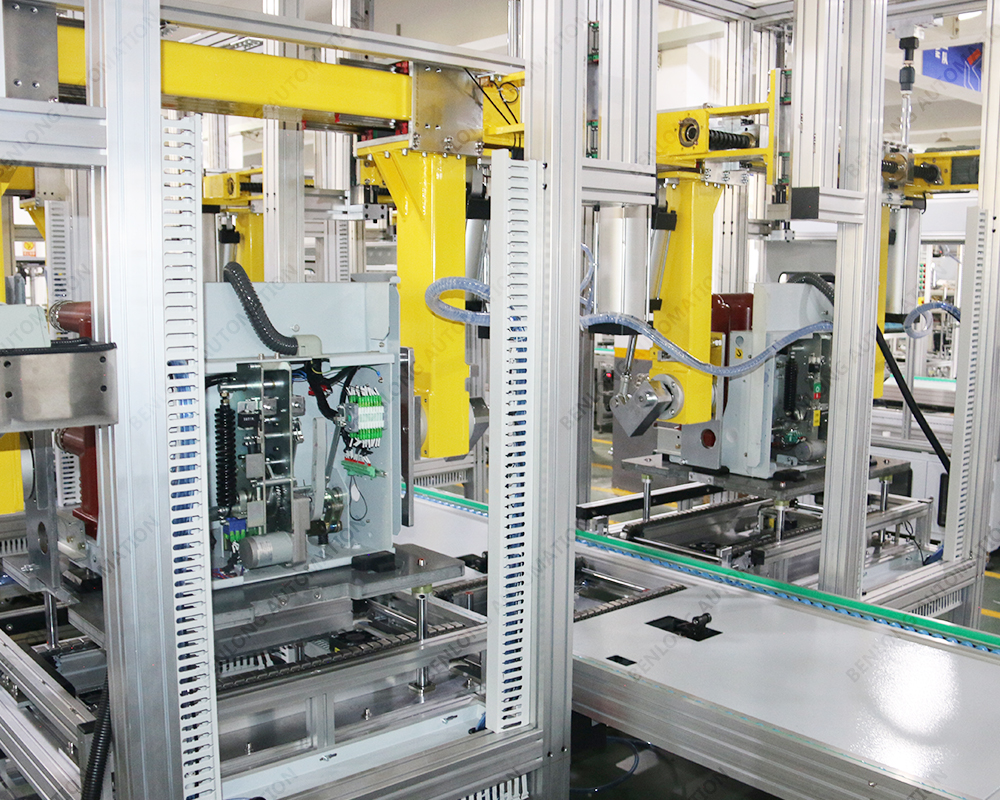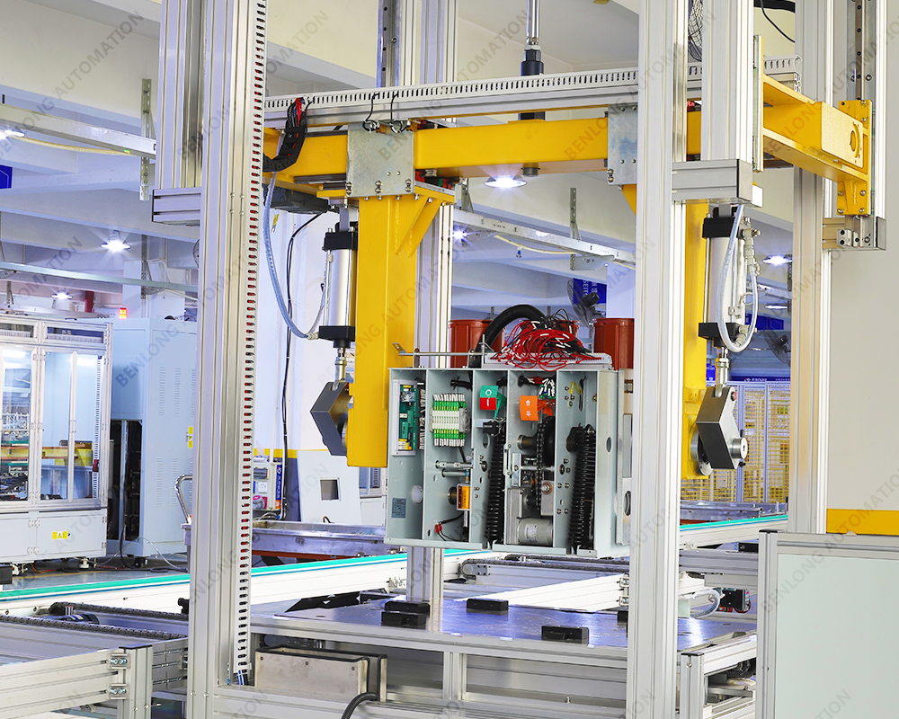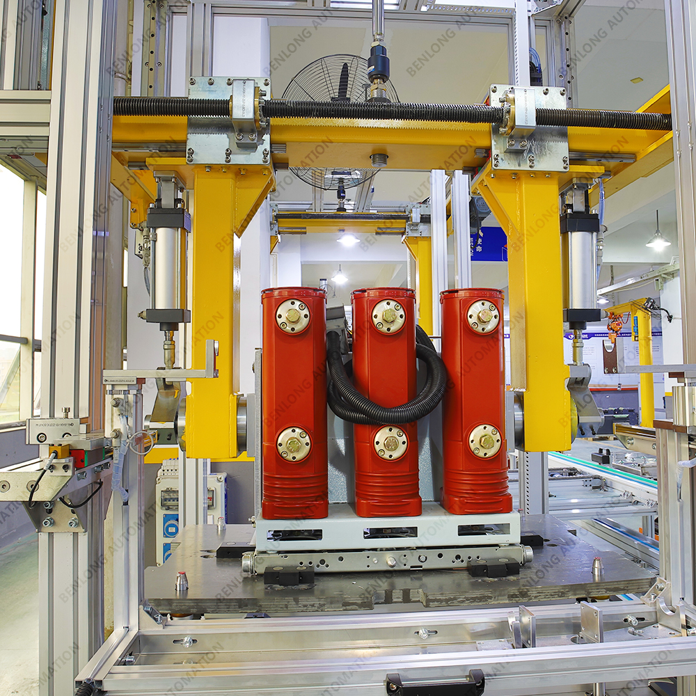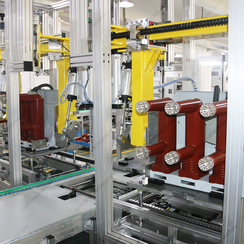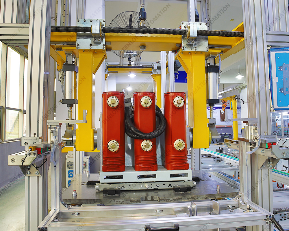 具有自動(dòng)AGV物流輸送、龍門架自動(dòng)上料、倍速鏈物流、絕緣筒裝配、滅弧室裝配、初調(diào)裝配、初調(diào)翻轉(zhuǎn)、