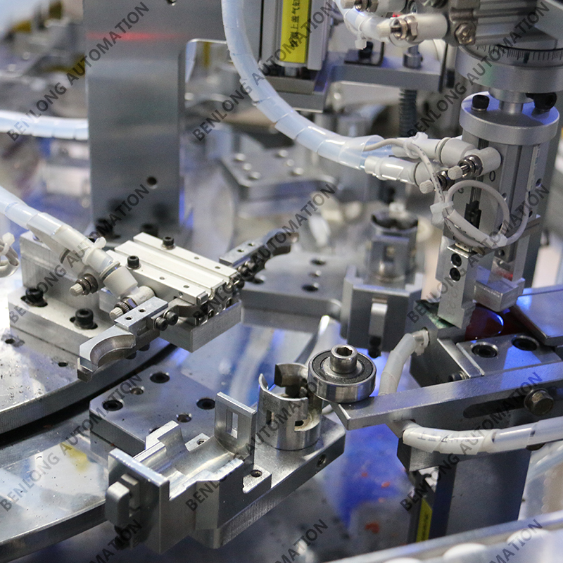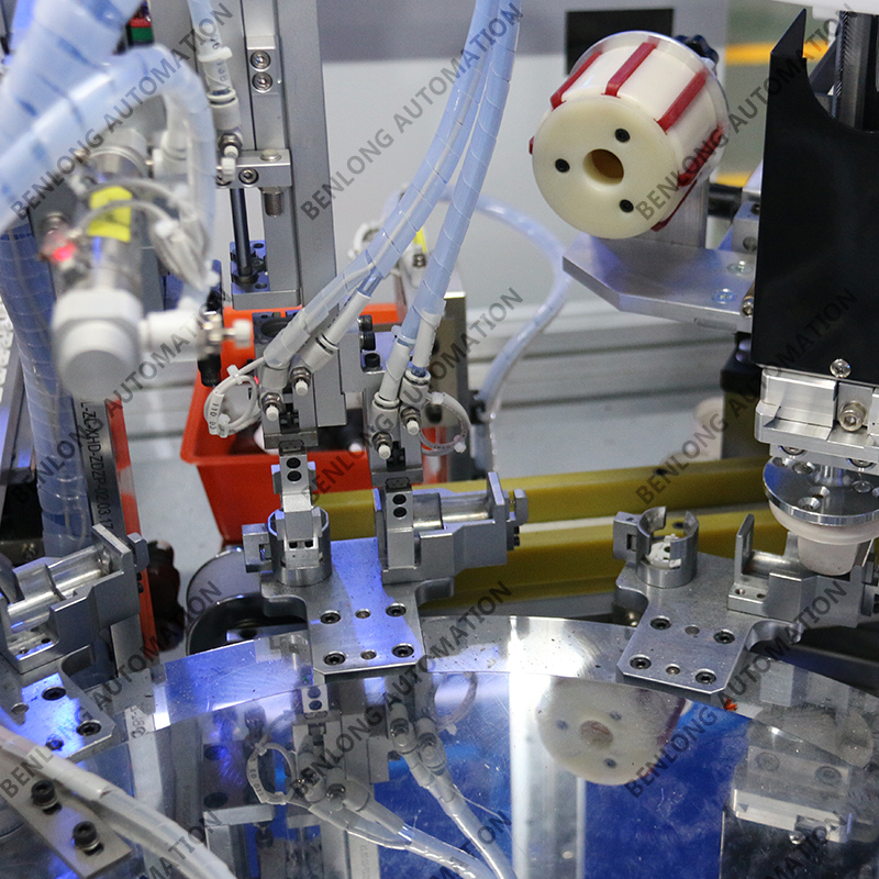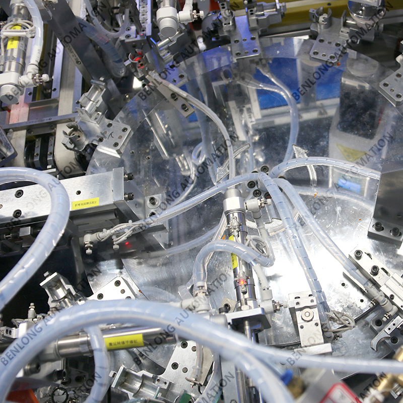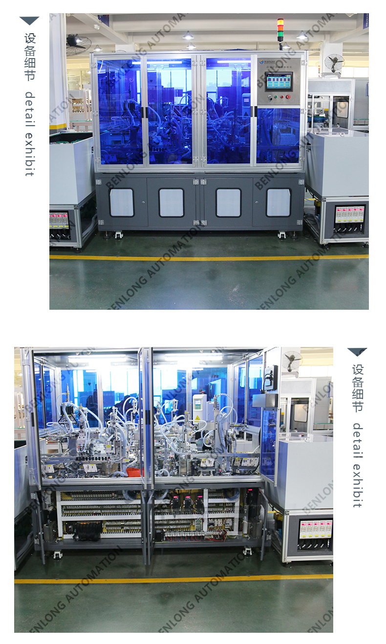 具有產(chǎn)品自動(dòng)上料、錫焊、裝帽蓋、裝膠圈、裝塑料螺母、鎖螺絲、移印、激光標(biāo)刻、檢測(cè)、合格不合格區(qū)分、包裝、
